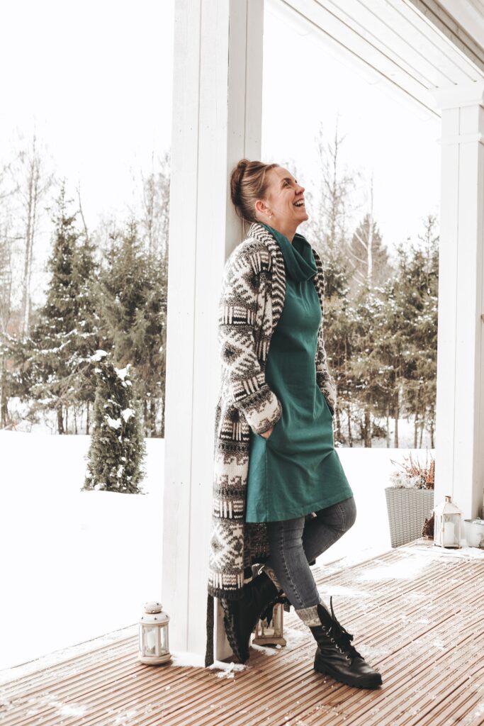 Tasapainoa arkeen tuo perheen lisäksi tanssi sekä niin sanottu aivojuoksu, eli vähintään 20min mittainen suoritus cardio-sykeellä, yleisesti juoksumatolla toteutettuna, noin kolmesti viikossa. Tällä tavoin ainakin luulen pitäväni stressivasteen kunnossa, tuo adhd kun saattaa tehdä elämästä hiukan normaalia haastavampaa. Olen myös aina maadoittunut käsitöillä, joten ei ehkä ihme että ajauduin kehittämään taitojani myös pukuompelijaopintoihin. Jos johonkin on tunnustettava kärsivänsä riippuvuutta, niin se on ehdottomasti neulelangat. Niiden haaliminen ei ole balanssissa toteutettujen neuletöiden kanssa, vaikka puikoilla on jatkuvasti vähintään kahdet sukat tulossa.